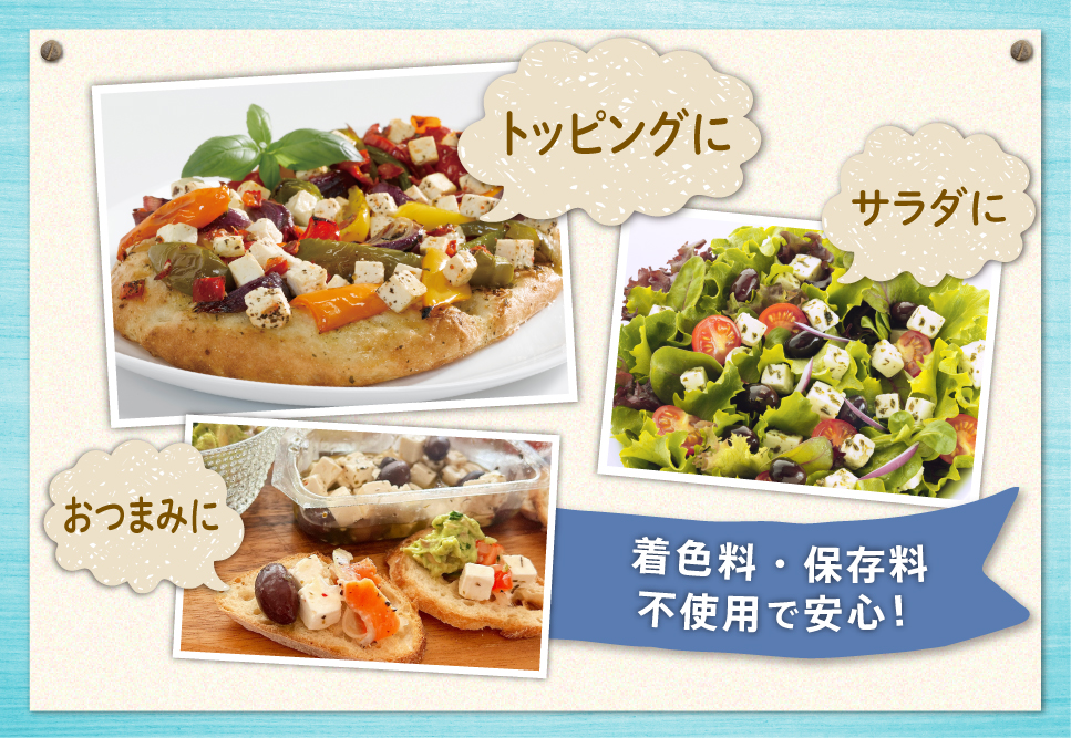 世界30カ国以上で販売されているアペティーナ。牛乳が原料のアペティーナはプレーンな仕上がりで食べやすく、サラダやピザ、トッピングに、パスタにあえたり、使い方もいろいろ。