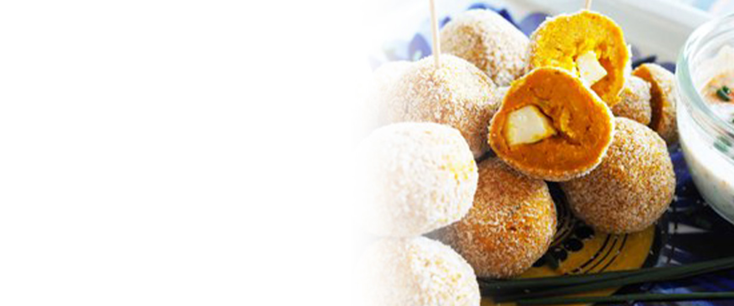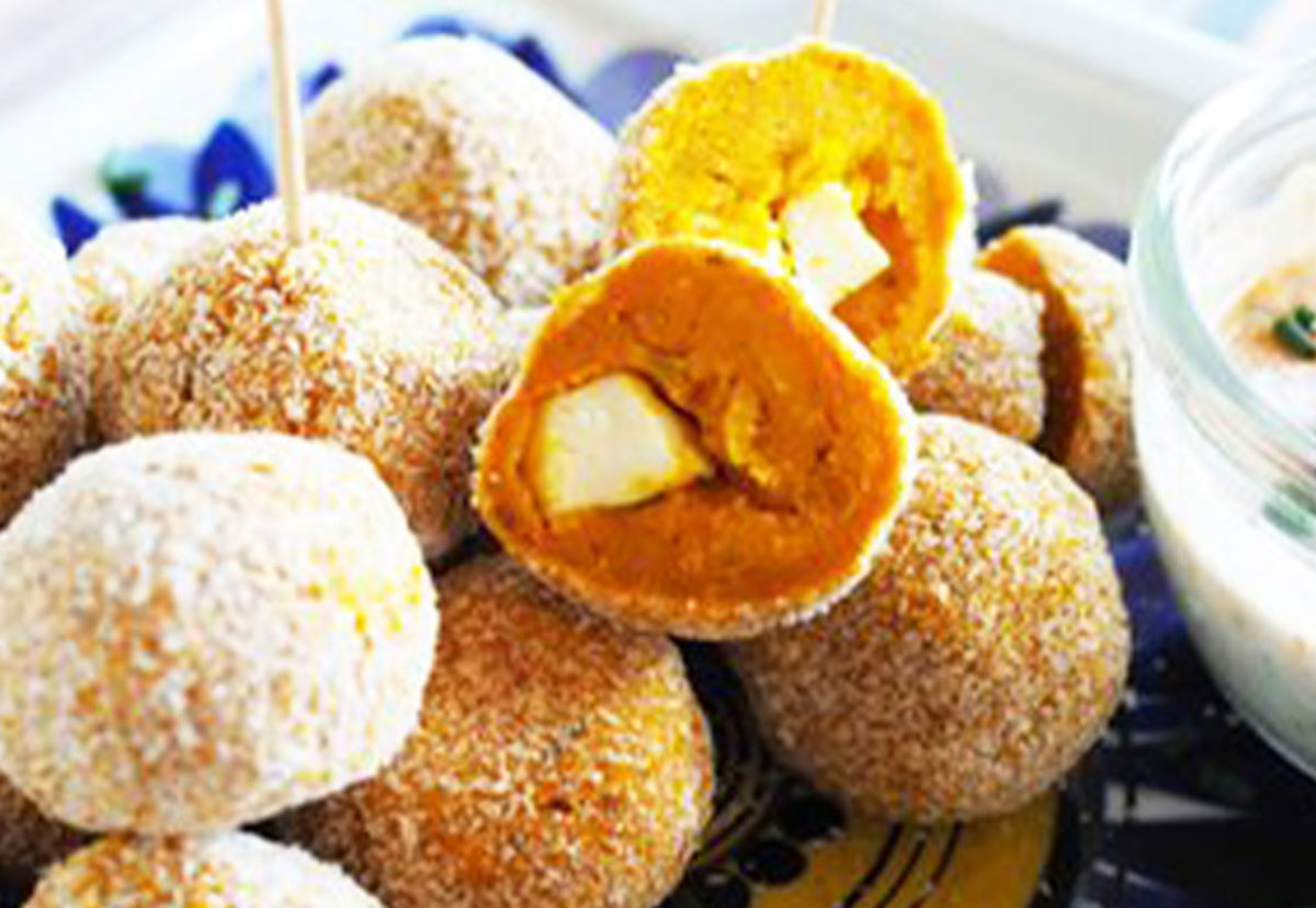1.かぼちゃは皮とワタを除き一口大に切り、レンジで加熱して柔らかくし、熱いうちにマッシュする。